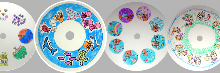自分の描いた絵を大きく映しだすということは、子どもたちにはとても魅力的なことです。しかし、今は学校でもPCプロジェクターが主流となり、以前のようなスライド映写機を見かけることがなくなりました。投影するフィルムは回転盤とし、連続画や8コマ漫画が描けるようにしました。