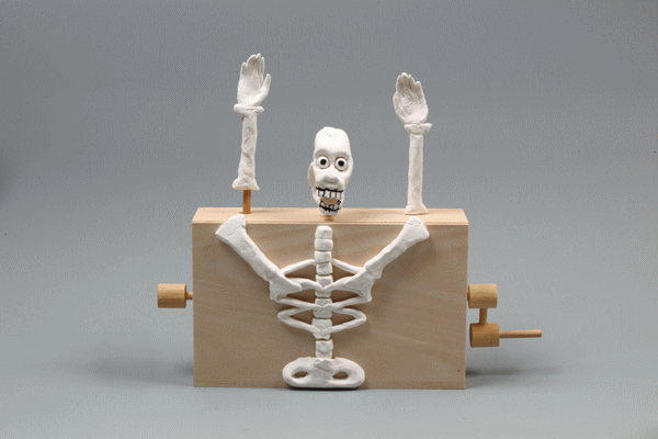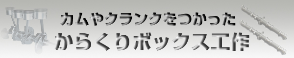 カムやクランクは、機械の基本的な部品です。自動車のエンジンにも使われている機構です。最初に、1時間半をかけて、カムやクランクを使用したカラクリボックスを作りました。箱の横のハンドルを回すと、回転運動がカムによる上下運動や傘ギヤによる回転運動に変わります。そのあと、ボックスの動きを利用して、みんなのアイデアを盛り込んだ自由工作をしました。。