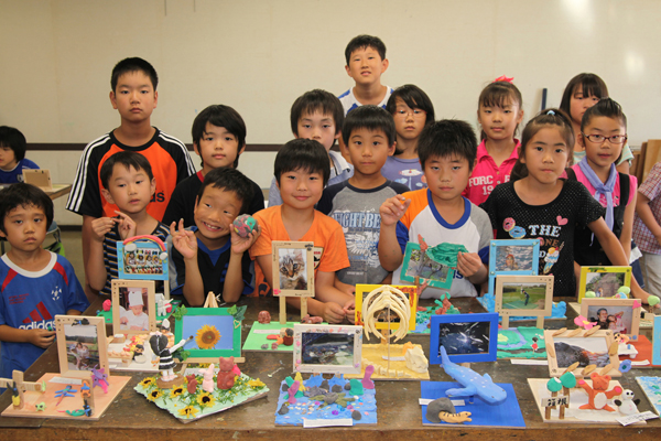 今回は、夏休みということもあり、造形工作をしました。思い出の写真を持参し、フォトフレームに入れ、紙粘土で装飾し立体写真立てを作りました。
