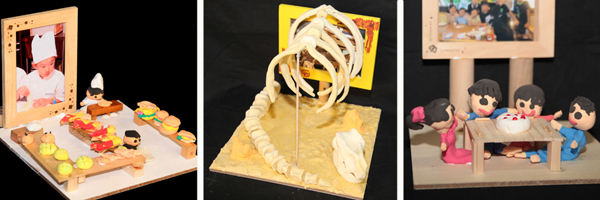 楽しい思い出やファンタジーの世界など、写真から広がる世界を3Dで表現しました。写真の楽しさに、粘土の造形が加わり、ほんとうにたのしい作品になりました。みんなの楽しかった、うれしかった気持ちが、写真と写真立てにあふれています。