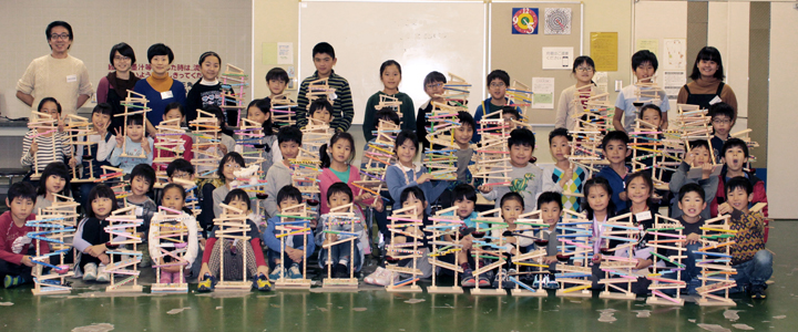 玉が途中で止まらないこと、レールから落ちてしまわないこと。これが作るうえでの大切な課題ですが、もう一つの課題があります。それは、できるだけ時間をかけてゆっくりと落ちることです。玉をころがし始めてから、一番下で止まるまで10秒以上が銅メダル、15秒以上が銀メダル、20秒以上が金メダルです。今回の45cmタワーで金メダルを取るのは、とてもむずかしい課題です。
