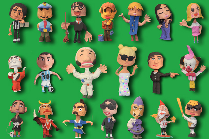 紙粘土で人形を作りました。「物」や「動物」を作るのと違い、人形を作ることには特別な想いが働きます。「かわいく作りたい」「かっこよく作りたい」「本物そっくりに作りたい」・・・いろいろな想いをこめて作りました。人は、人間の表情には敏感で、ちょっとした違いも繊細に識別します。ちょっとしたバランスで、人形から感じるものは大きく変わってしまいます。