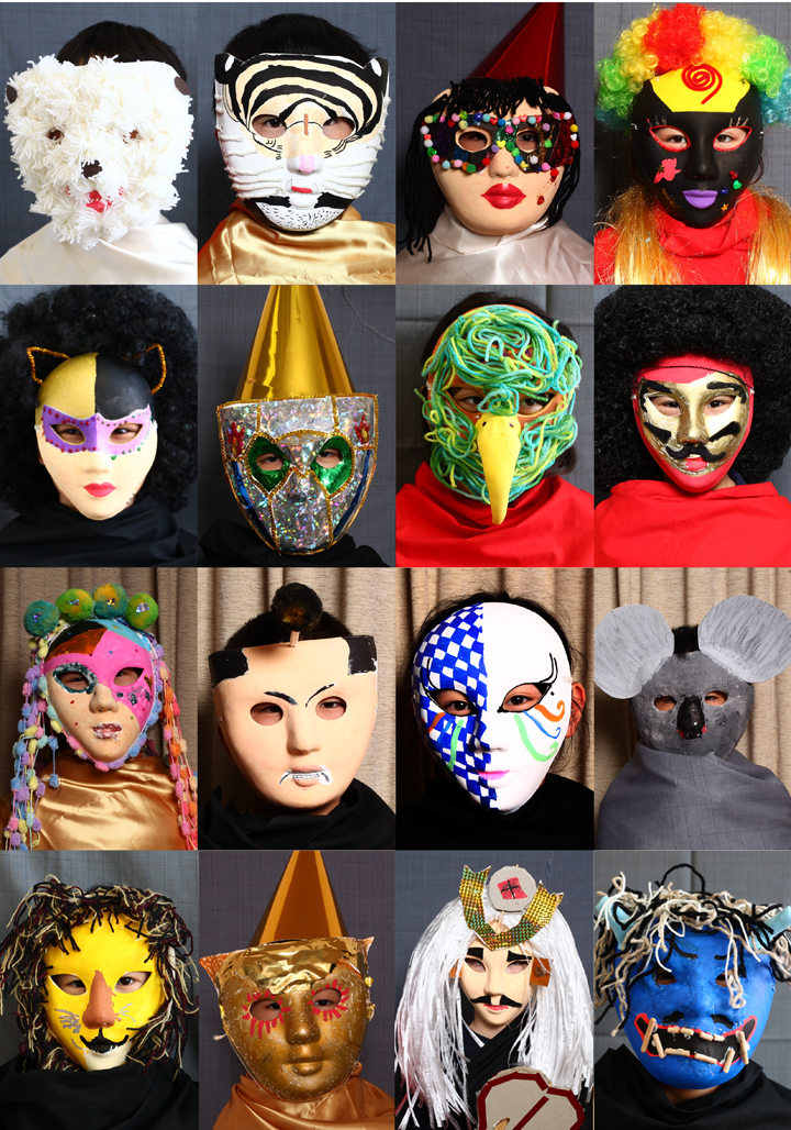 新しいお友だちがたくさん入ってきた4月、デザインの課題をしました。仮面づくりです。自分のアイデアをはっきりさせるために最初にスケッチを描いてから作り始めました。 いつどんな場面で使うお面なのか、具体的なシチュエーションを想像しながらつくりました。みんな、自分だけのオリジナルアイデアで楽しい仮面を作っていきました。最後にカツラや帽子をかぶって、マントを着て写真を撮影しました。次々に出てくる楽しくて面白いアイデアに先生もビックリでした。